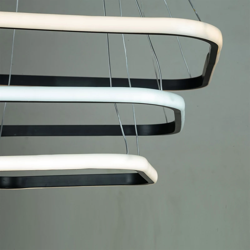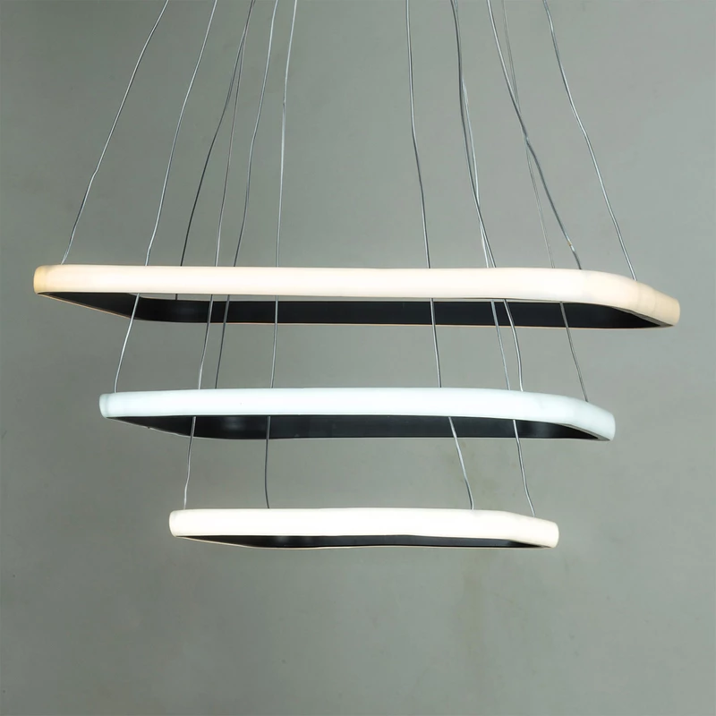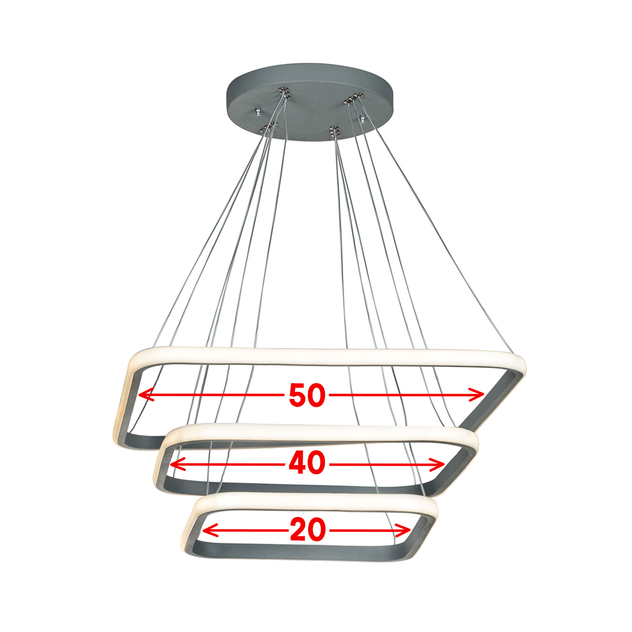 این نوع لوسترها در بازار معروف به لوستر های SMD می باشد و به صورت 3 حلقه مربع شکل می باشند . لوستر مدرن سه شعله چشمه نور کد A6320/3 را می توان به سه حالت روشن کرد : حالت اول هر دو حلقه به صورت نور مهتابی یا همون سفید باشد .حالت دوم : هر دو حلقه به صورت نور آفتابی یا زرد باشد و حالت سوم : یکی از حلقه ها آفتابی و دیگری مهتابی باشد که ترکیب این دو رنگ نور زیبایی را به محیط می‌بخشد. و یا حتی میتوانید یکی از حلقه ها را روشن و دیگری را خاموش کنید . کنترل ریموت این محصول از دو بخش تشکیل شده است که بخش اول یعنی دکمه های سمت چپ مربوط به حلقه ی بزرگ تر و دکمه های سمت راست مربوط به حلقه ی کوچک تر می باشد.