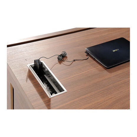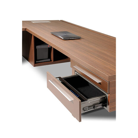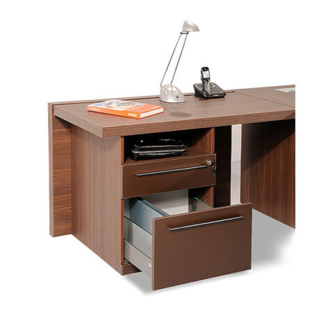 میز مدیریت البرز محصولی از خانواده مدیریتی البرز محسوب می شود، که امکان نصب گاوصندوق و سطل زباله در آن وجود دارد. از امکاناتی نظیر کشو جهت قرار دادن لوازم شخصی و اداری، جای کیس با تهویه مناسب و دریچه عبور هوا ساخت شرکت Albature ترکیه برخوردار است. این محصول همچنین مجهز به یک الکتریک باکس است، که دارای پریز برق، شبکه، شارژ، سوکت میکروفون و VGA میباشد.