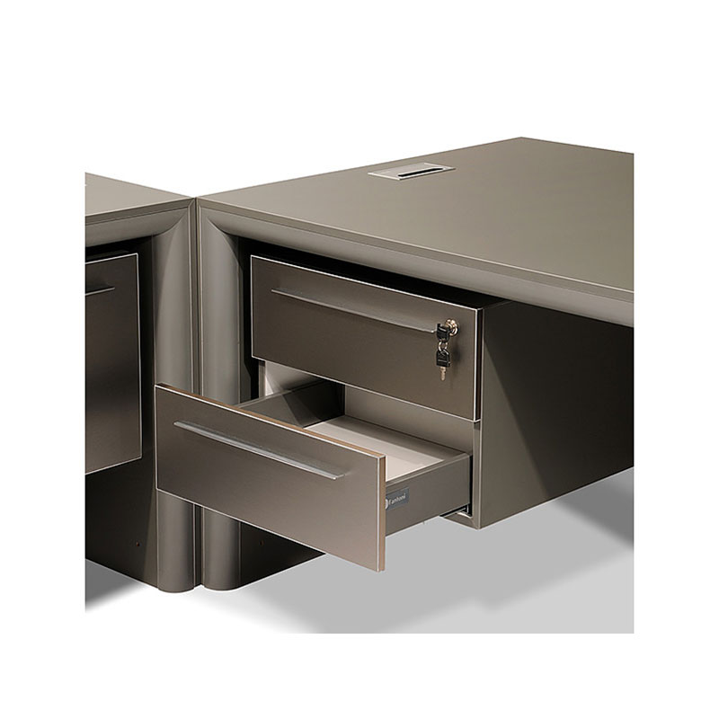 میز مدیریت زاگرس، دارای کشو و کمد با ریلهای لوکس و آرامبند، جهت قرار دادن لوازم مدیران است. امکان اضافه نمودن Safety Box در یکی از کشوهای میز نیز وجود دارد.