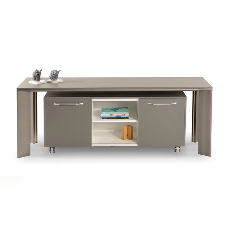 پایههای میز با ساختاری بسیار مستحکم و اتصالات قوی از جنس پروفیلهای آلومینیومی اکسترود و دایکاستهای ویژه، آنادایز شده در دو رنگ دودی و شامپاینی